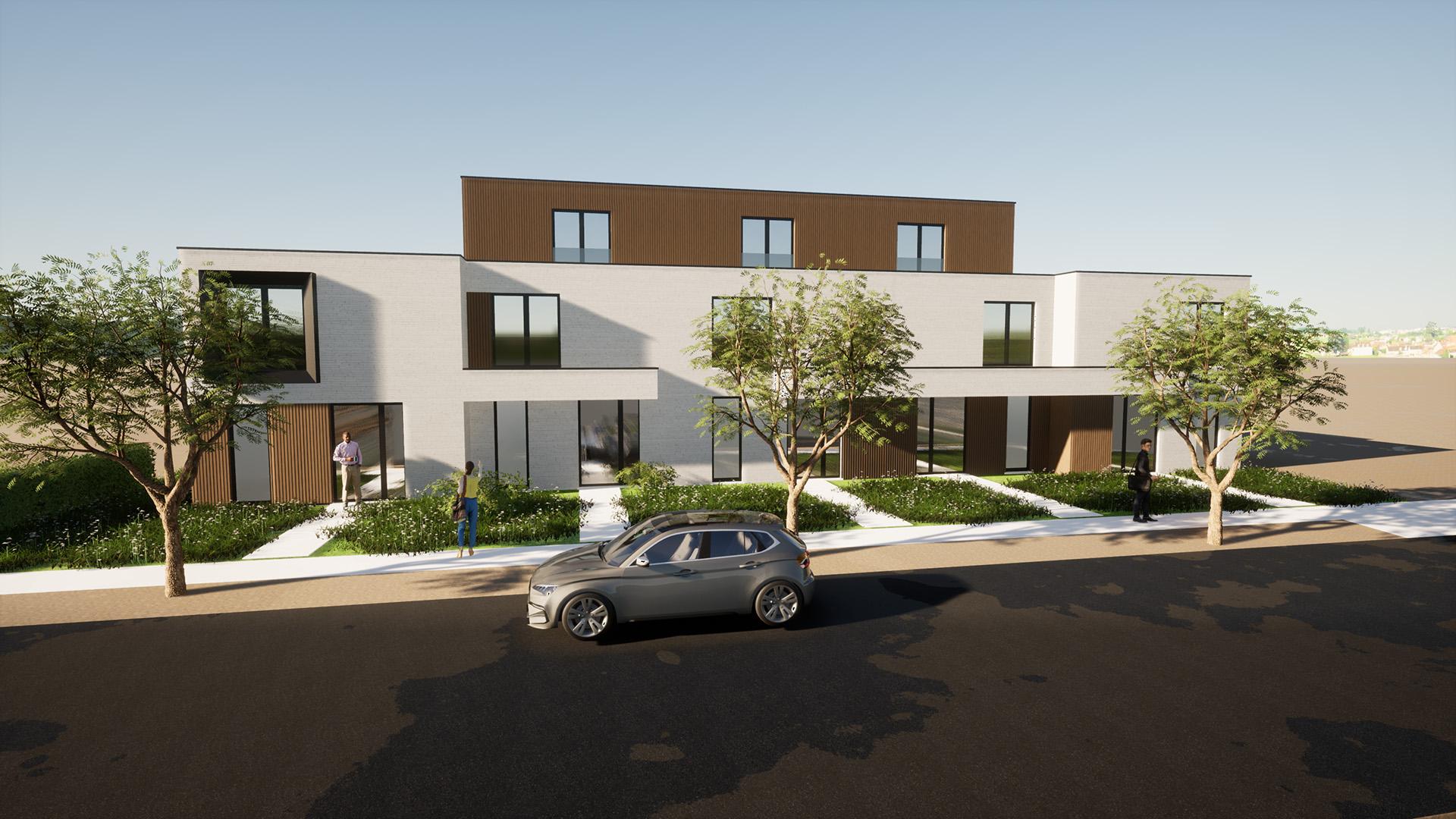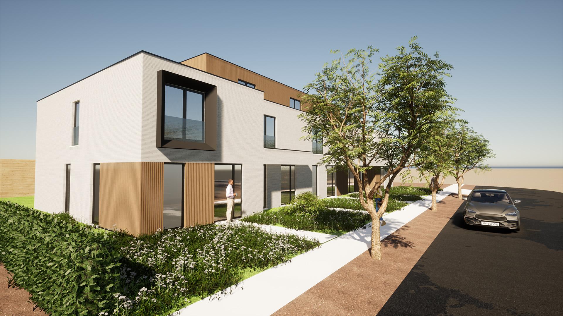 5 hoogwaardige woningen met garage en uitweg achteraan.